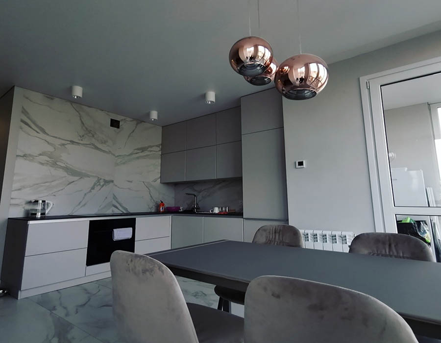 В итоге вы получаете красивые потолки. Производится окончательный расчет. Предоставляется гарантия 15 лет на полотно.
